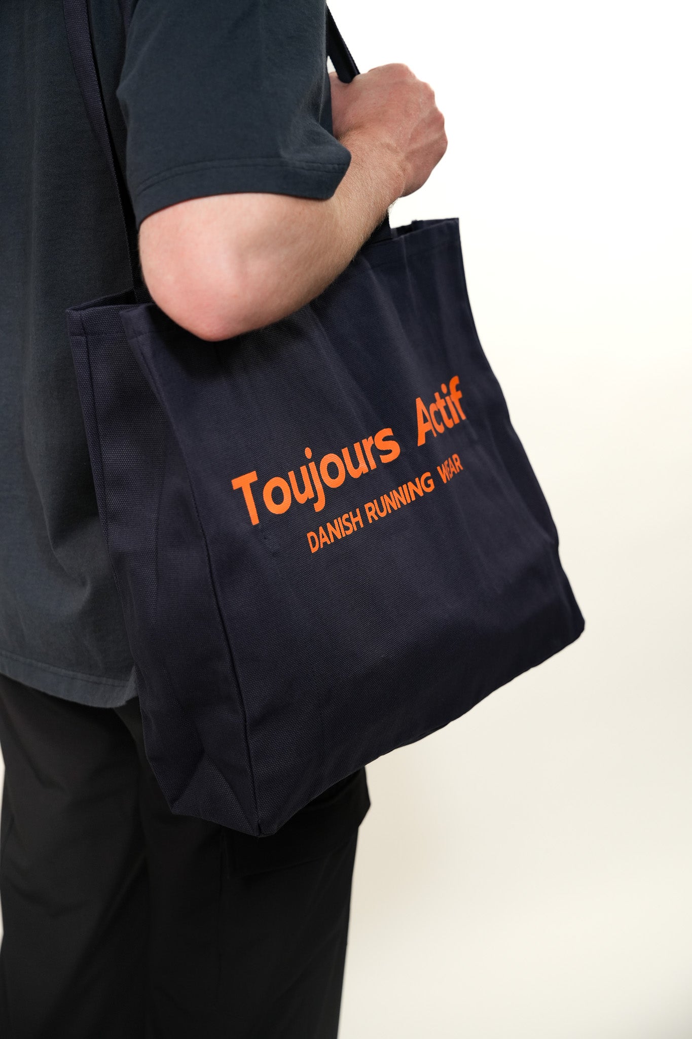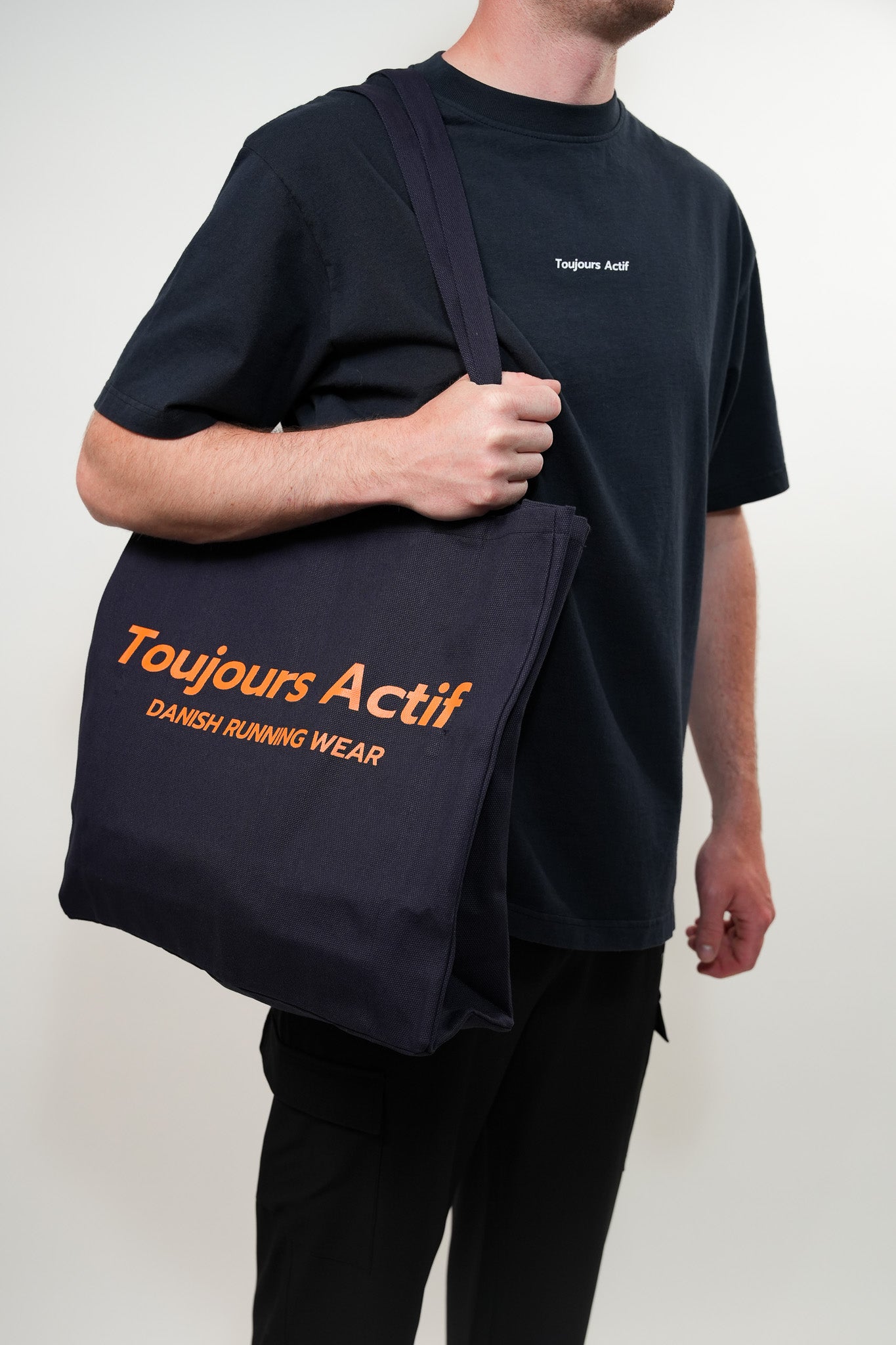 The Tote Bag is ideal for everything from workout clothes to shopping and everyday essentials. It is spacious and practical with a small inner pocket for keys and wallet as well as a larger pocket that is perfect for a laptop. The two wide straps make it easy and comfortable to carry over the shoulder, while the iconic orange Toujours logo adds a stylish touch.